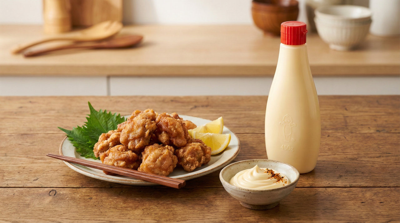 La maionese Kewpie è una versione giapponese della maionese tradizionale, particolarmente apprezzata per la sua texture cremosa e il gusto distintivo. Si differenzia dalla maionese standard principalmente per l'utilizzo esclusivo di tuorli d'uovo anziché dell'intero uovo, e per l'aggiunta di un aceto a base di succo di mele e malto, che conferisce un sapore leggermente più dolce. Questa maionese è molto versatile e viene utilizzata in una varietà di piatti giapponesi, dai condimenti per insalate (v. Potetosarada) o per il celebre pollo fritto (Kara Age), rendendola un ingrediente essenziale nella cucina giapponese contemporanea.